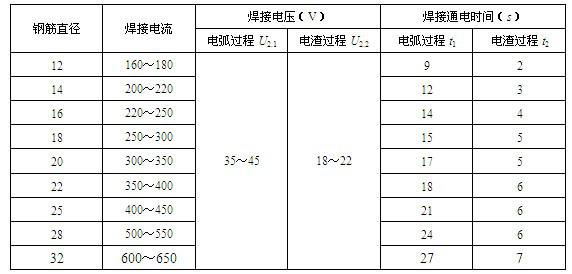 5 電渣壓力焊焊接參數(shù)應(yīng)包括焊接電流、焊接電壓和通電時間,采用HJ 431焊劑時,宜符合表4.6.6的規(guī)定。采用專用焊劑或自動電渣壓力焊機時候,應(yīng)根據(jù)焊劑或焊機使用說明書中推薦數(shù)據(jù),通過試驗確定。