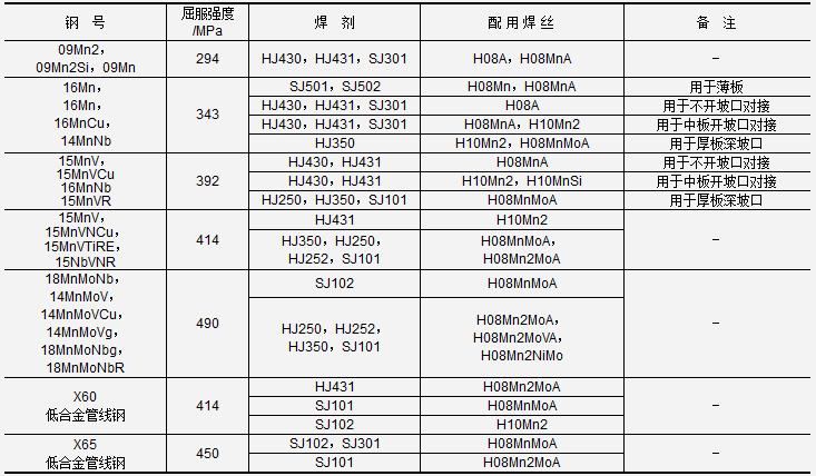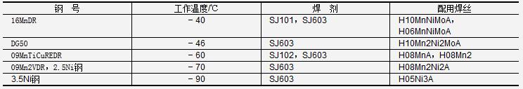 表4常用低溫鋼埋弧焊時焊劑與配用焊絲