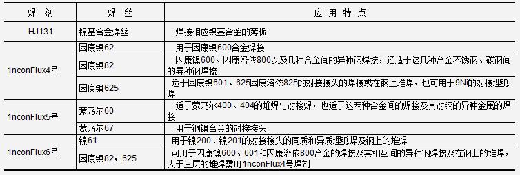 表8 常用耐蝕合金埋弧焊焊劑與配用焊絲的應(yīng)用特點