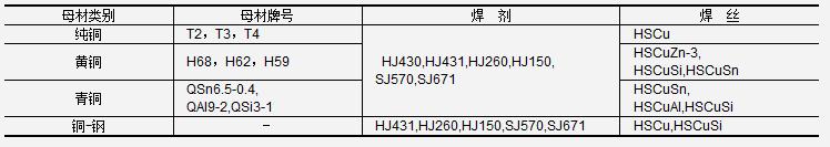 表9 常用銅及銅合金的焊劑與配用焊絲